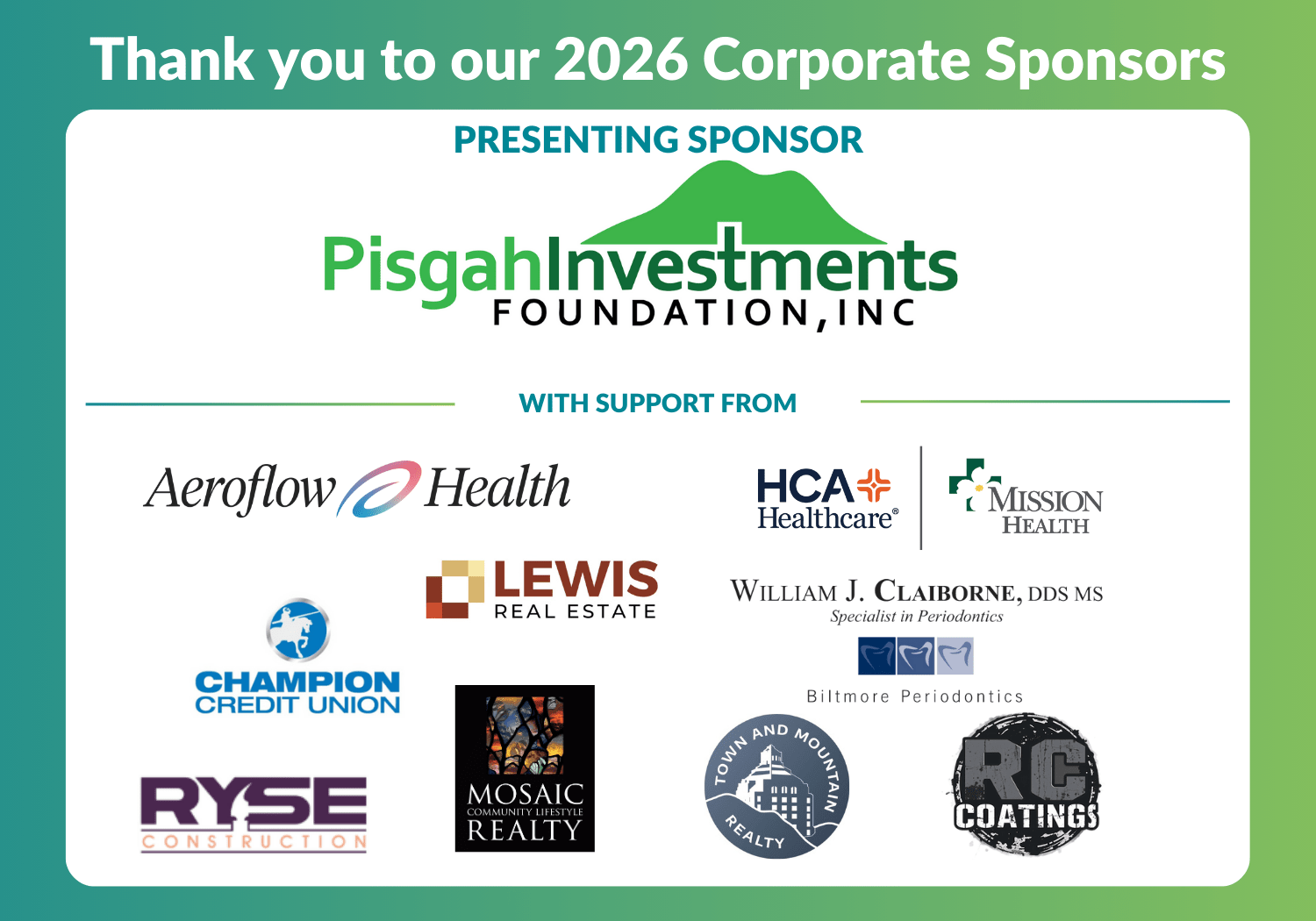 We invite businesses to sponsor our 17th Annual Authors for Literacy on April 30, 2026. When businesses sponsor this event, more children, adults, and communities flourish – and we all win. Please help us create this transformative change. Our 2026 Presenting Sponsor, Pisgah Investments Foundation, has issued a $30,000 matching gift challenge to inspire local businesses and leaders to rise to the occasion and make a difference. Corporate sponsorships and donations will be matched dollar-for-dollar. This means businesses can have double the impact in 2026! Click here to become a 2026 Corporate Sponsor, or contact Linda Murphey if you’d like to learn more about this opportunity.
